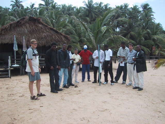 The more you are away from the equator, the shortest is the radius that you will measure with our method. In this case you might need to correct your measurement (r) using the latitude of your location (λ): R = r / cos(λ) We also applied this correction, but it turned out to be not very significant, since we are so close to the equator. The average latitude of the Boat Yard and the Beach Hut is: 6° 26' = 6.43° R = 6263 / cos(6.43) = 6303 km |
