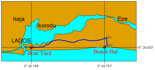 it kept on raining all the time. With the help of a GPS we obtained the input data: And from the software we obtained the local midday at the Boat Yard: 12h:42min:41sec or 12h:42.68min In conclusion, the time interval between the local midday at the two