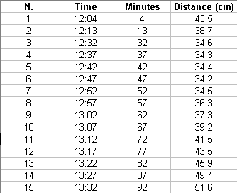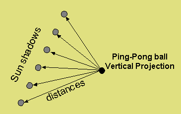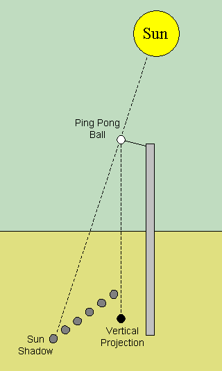 We marked the movement of the shadow for an hour and a half and then we measured all the distances between each mark and the vertical projection of the ping-pong ball.